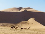 Kamelreise im Tassili n´Ajjer vom Berg Tazat über weite Sandebenen in die Schluchten und Wadis